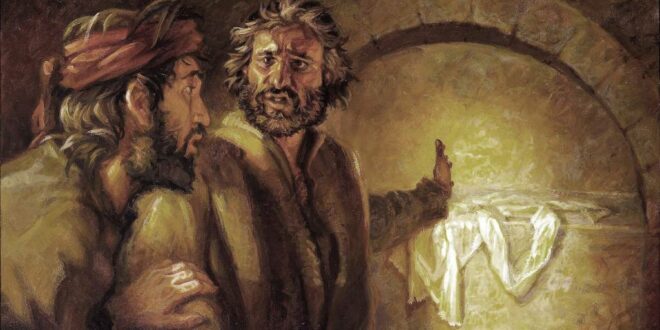 El primer día de la semana. Recordemos que desde el Génesis, en que se van poniendo los días de la semana, el primer día es el que sigue al “Sabbat” o sea al Día de descanso. Comienza una nueva semana. Estos días han tenido diferentes nombres. Pero es de saber que se trata después del día de reposo obligatorio. Jesús es crucificado, muerto y sepultado en el viernes víspera del solemne sábado de Pascua. Tuvieron tiempo de descender el cuerpo muerto de Jesús y ponerlo en la tumba de José de Arimatea, ya estaba oscurenciendo, y comenzaba la vigilia del Sabbat. Había que quedarse en casa, no estaba permitido caminar más de unos pasos ni estaba permitido hacer ninguna labor. Por eso ese día, el último, todos reposan. Pero no han tenido el tiempo para ungir el cuerpo muerto de Jesús, con los aceites y perfumes que se acostumbran. Hay que esperar que pase el sábado. Antes que saliera el sol al día siguiente, salen (aunque Juan nombra sólo a la Magdalena). Y la gran pregunta que tendría en su mente es cómo iría a correr la piedra… Ella iba a buscar a Jesús muerto, pero no lo encuentra. Corre para avisar que “se han llevado el cuerpo del Señor” y Pedro y el discípulo amado corren para ver. Aunque Juan llegó antes, dejó que Pedro entrara primero, vieron las sábanas con que habían envuelto a Jesús, y el sudario que cubría su cabeza en otro lugar. Cuando entró el discípulo amado, al ver todo esto creyó. Desde ese momento entendió lo que Jesús durante tanto tiempo les había explicado que según la Escritura, debía resucitar de entre los muertos.