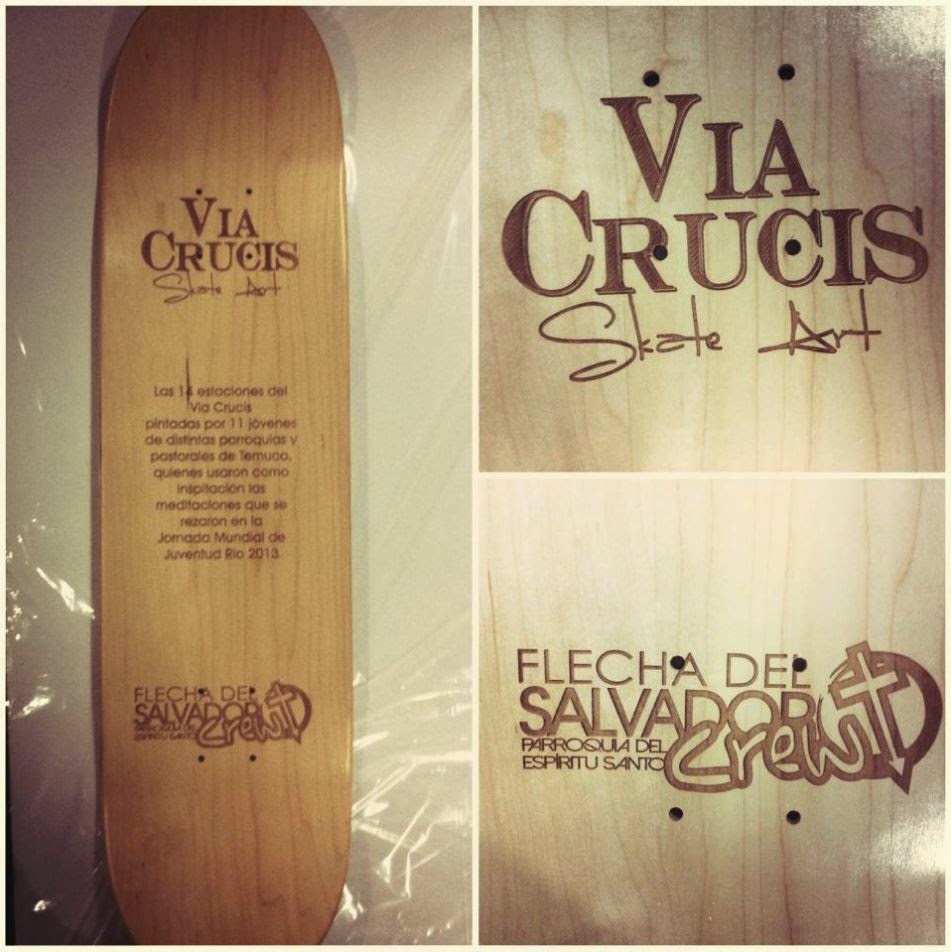 Estos jóvenes chilenos lo han puesto en práctica. Han unido algo tan popular como el skate board con algo tan profundo como la fe. El resultado es éste: las 14 estaciones del Via Crucis pintadas en tablas de skate.